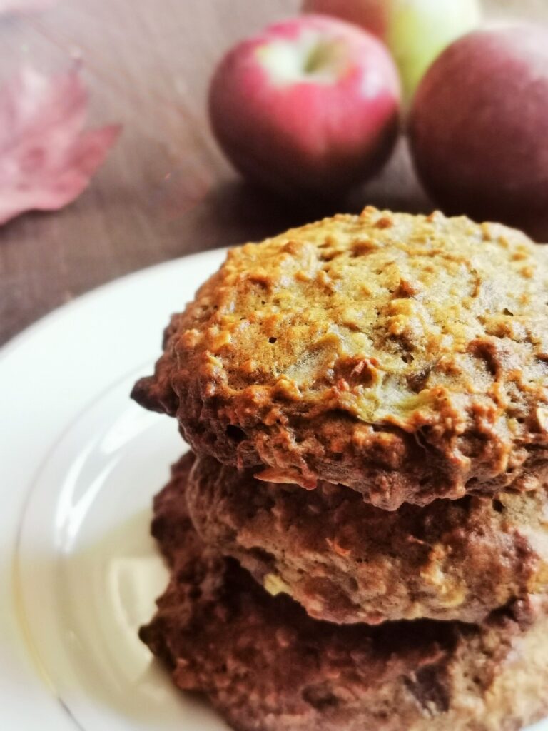 Après avoir cuisiné des beignes aux pommes qui se sont envolés en moins de 12 heures, je me devais de cuisiner à nouveau une recette aux pommes qui sera une belle collation à offrir à ma famille : des galettes au gruau et aux pommes à l’érable