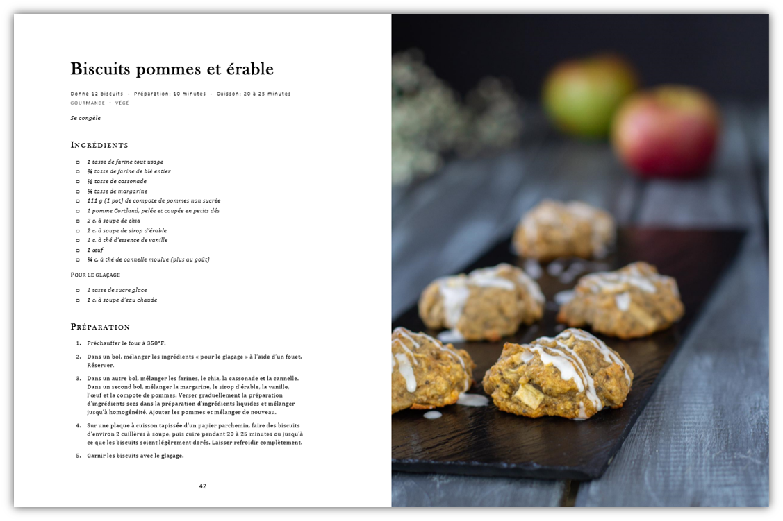 En voici un exemple avec ma recette de biscuits aux pommes et à l’érable, une recette de mon nouveau magazine « Bonne bouffe réconfortante ».