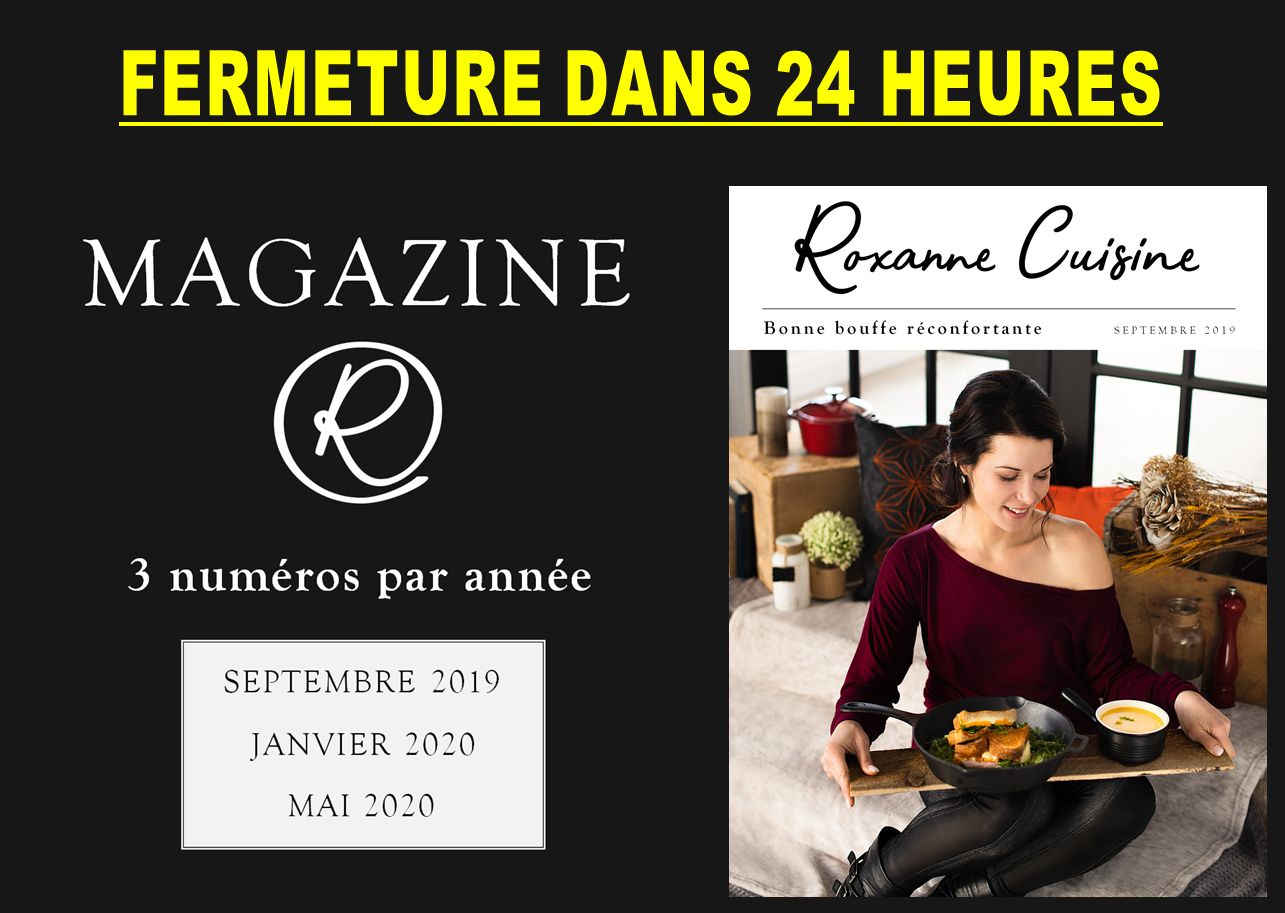 Clique ici pour t’abonner au magazine Roxanne Cuisine et recevoir le numéro de septembre « Bonne bouffe réconfortante » avant tout le monde.