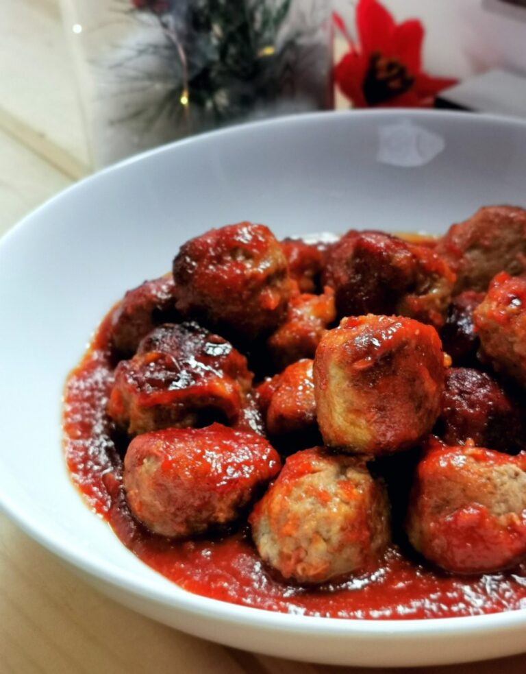 Alors qu’on connait bien le traditionnel « ragoût pattes de cochons » et ses boulettes, j’ai voulu « twisté » à ma manière une nouvelle recette de boulettes tendres, juteuses et sucrées avec ma sauce spéciale Beauceronne 😉