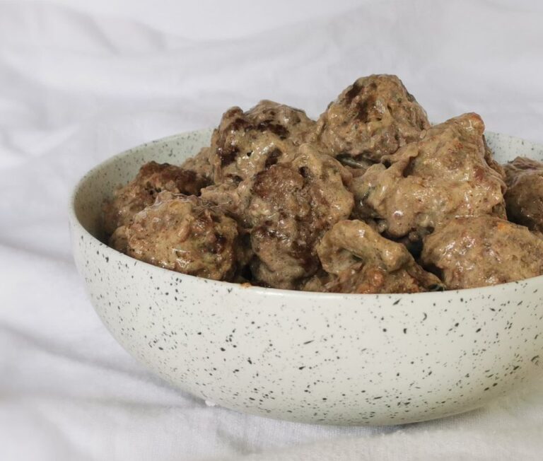 - Déposer les boulettes dans un plat allant au four, verser la sauce et enfourner de 20 à 30 minutes où jusqu’à ce que les boulettes soient cuites.