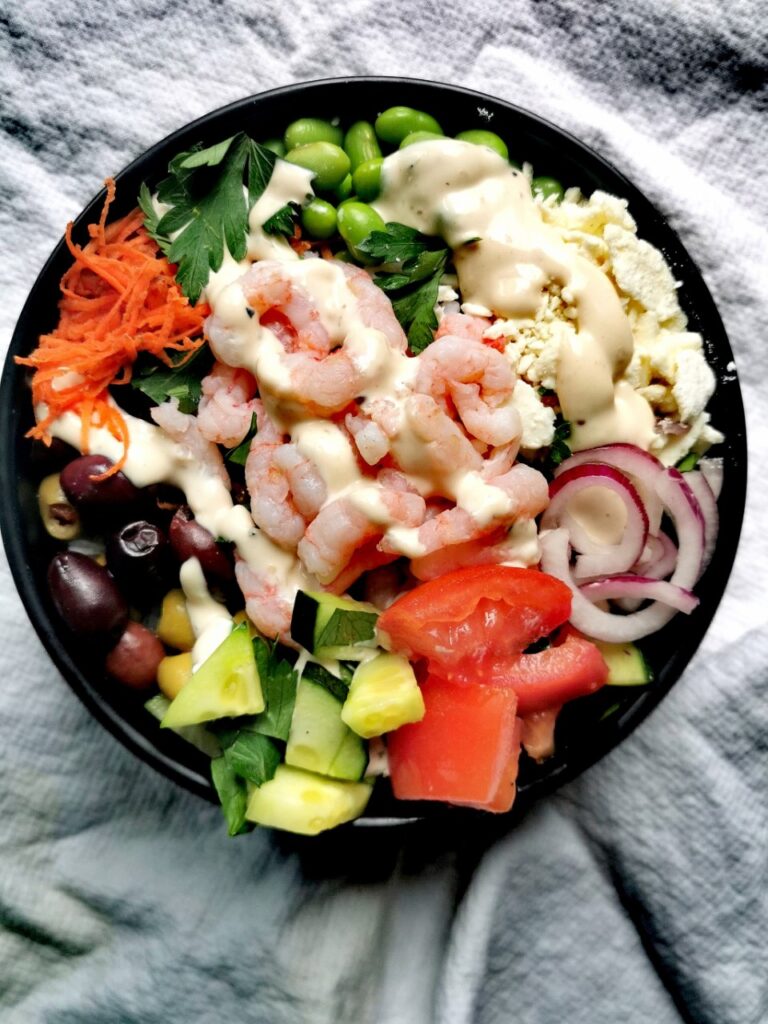 Si bon, frais et pas compliqué, ça fait différent du buddha bowl aux crevettes plus classique que nous connaissons.