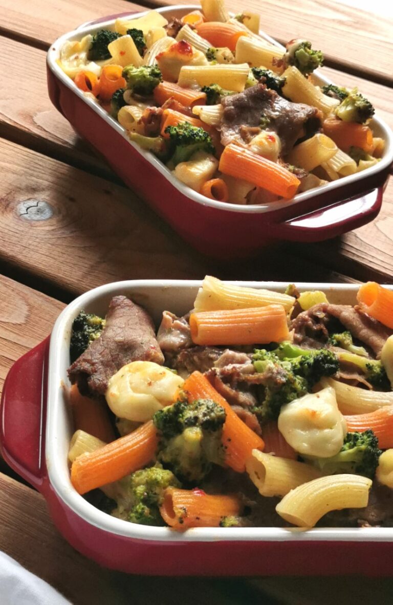 - Dans une casserole d'eau bouillante salée, faire cuire les pâtes et les fleurons 5 à 6 minutes. Égoutter. Dans une autre petite casserole, verser le bouillon de fondue. Porter à ébullition et y déposer votre viande. Cuire environ 5 minutes ou jusqu'à ce qu'elle soit cuite. Égoutter. Ajouter la viande aux pâtes, ajouter tous les autres ingrédients et bien mélanger. Déposer la préparation dans un plat allant au four et cuire 10 minutes à 350 F.