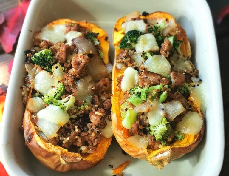 - Dans une poêle antiadhésive, verser l'huile et faire cuire l'oignon et la dinde pendant environ 7 à 9 minutes. Saler, poivrer puis ajouter les épices. Dans un grand bol, mélanger la préparation de viande, le quinoa, le fromage et le brocoli. Farcir les courges et cuire au four 5 minutes.
