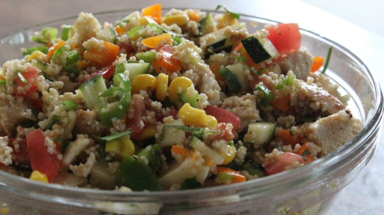 On peut tout simplement en ajouter dans nos salades prĂ©fĂ©rĂ©es, ce que j’ai fait ici dans cette salade de couscous au poulet grillĂ©, Oka et vinaigrette au cari.