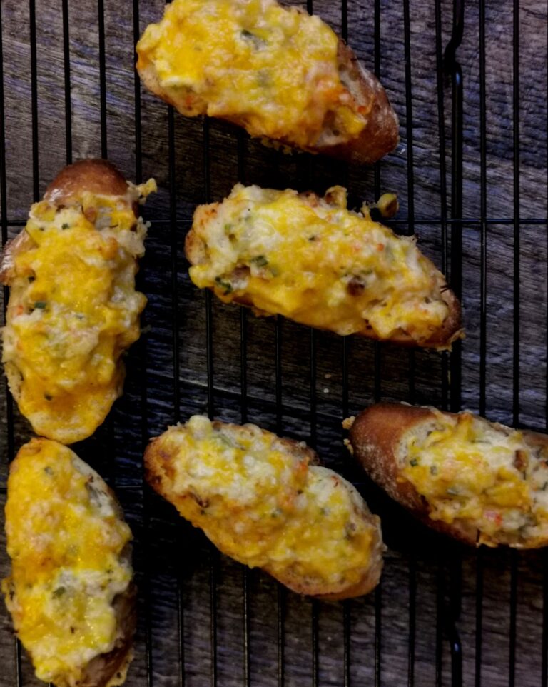 - Dans une poêle antiadhésive, verser l'huile et y faire grillé le maïs pendant environ 5 à 7 minutes. Entretemps dans un bol, mélanger la mayonnaise et le fromage à la crème. Y ajouter le fromage râpé, le crabe, le sel, le poivre et le maïs. Déposer la préparation sur vos rondelles de pain et garnir de fromage. Cuire au four à 350 F jusqu'à ce que le fromage soit fondu.
