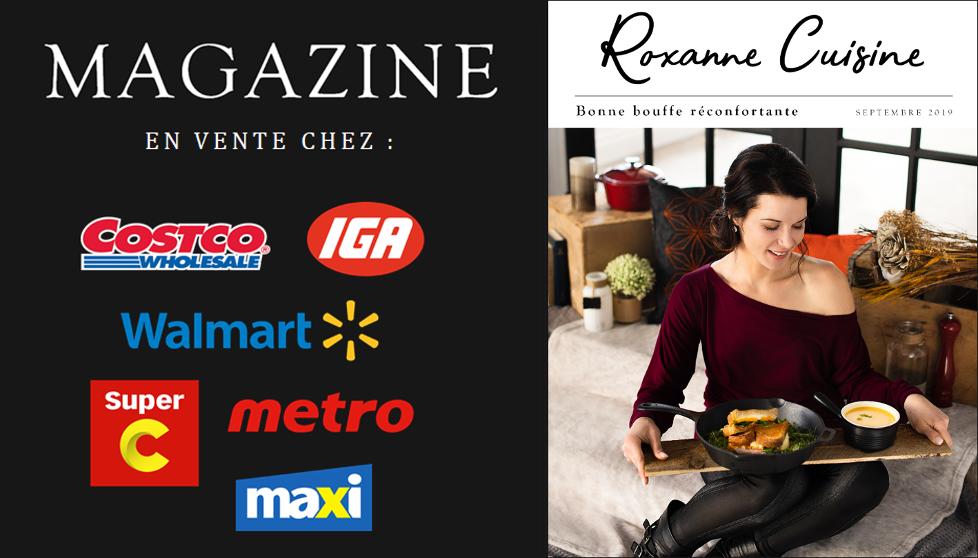 Le numéro du magazine Roxanne Cuisine « Bonne bouffe réconfortante » est maintenant disponible en kiosque partout au Québec à seulement 9.95 $ ainsi que sur ma boutique en ligne ici !