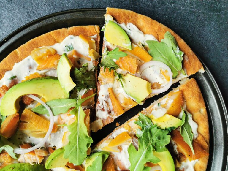 - Dans un petit bol, mélanger la mayonnaise, le fromage à la crème, la ciboulette, le miel et le poivre. Étendre la préparation sur la croûte, garnir de poissons fumés, d'avocat et de roquettes.