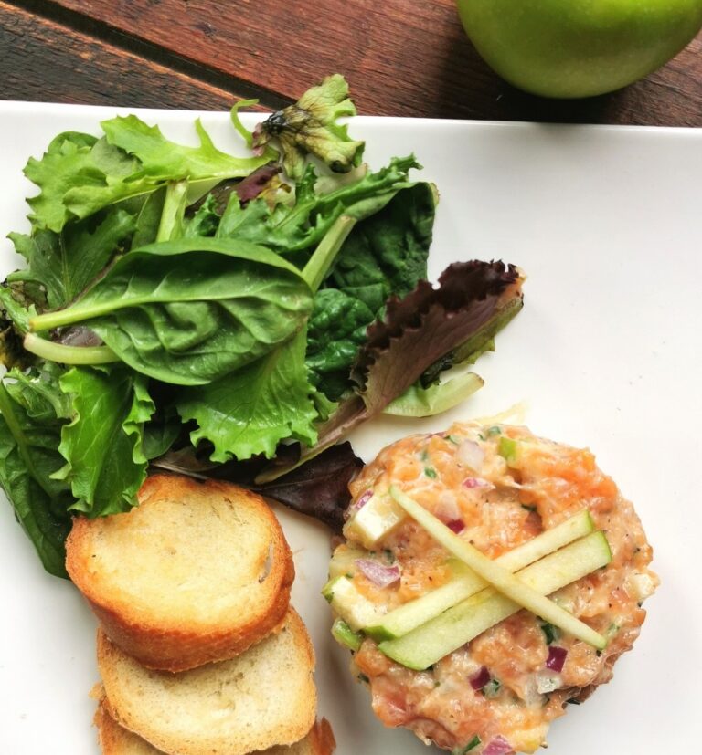 Moi qui aime la pêche ET l’automne, y’en a pas fallu plus que ça pour avoir le goût de cuisiner un bon tartare au pomme.