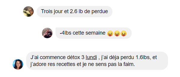 Ce sont tous des femmes qui désiraient atteindre leur objectif en 2019 et la première chose qu’elles ont faites, c’est de suivre ma semaine détox tome 3.