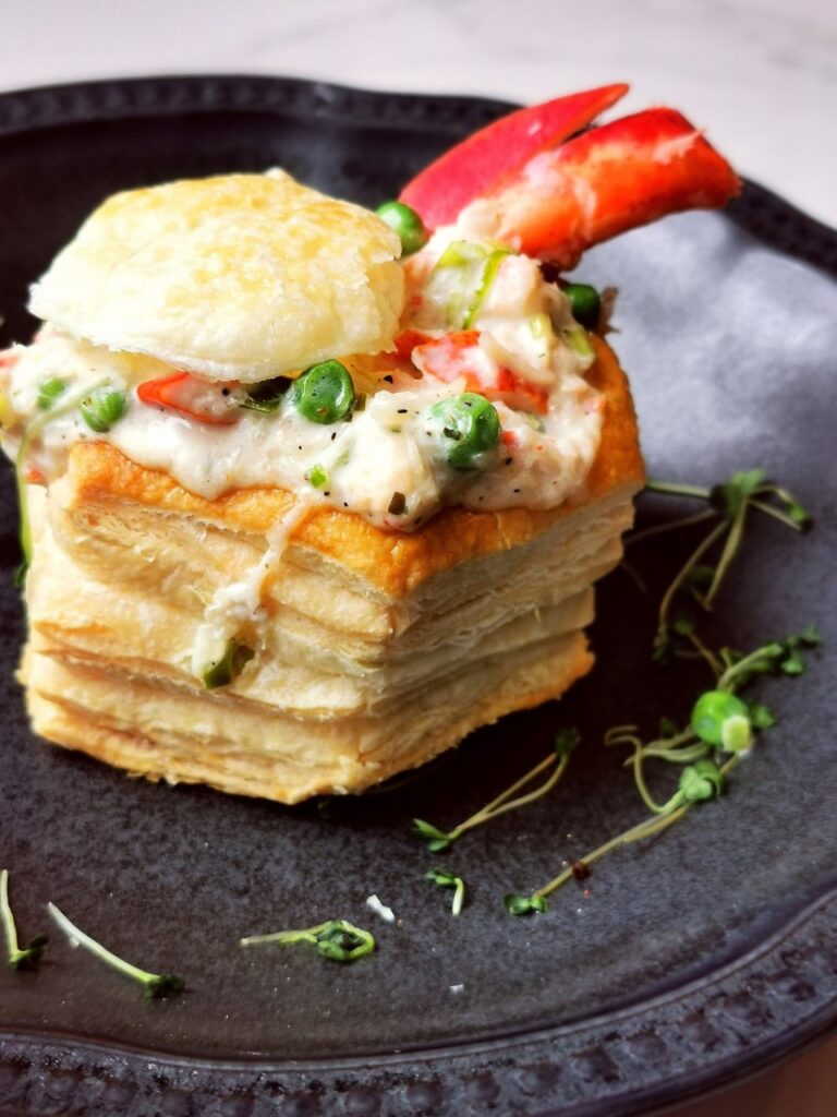 Quoique le classique vol-au-vent au poulet avec sa petite sauce à la king est excellent, j’ai voulu créer une version plus « chic » avec ce vol-au-vent au homard.